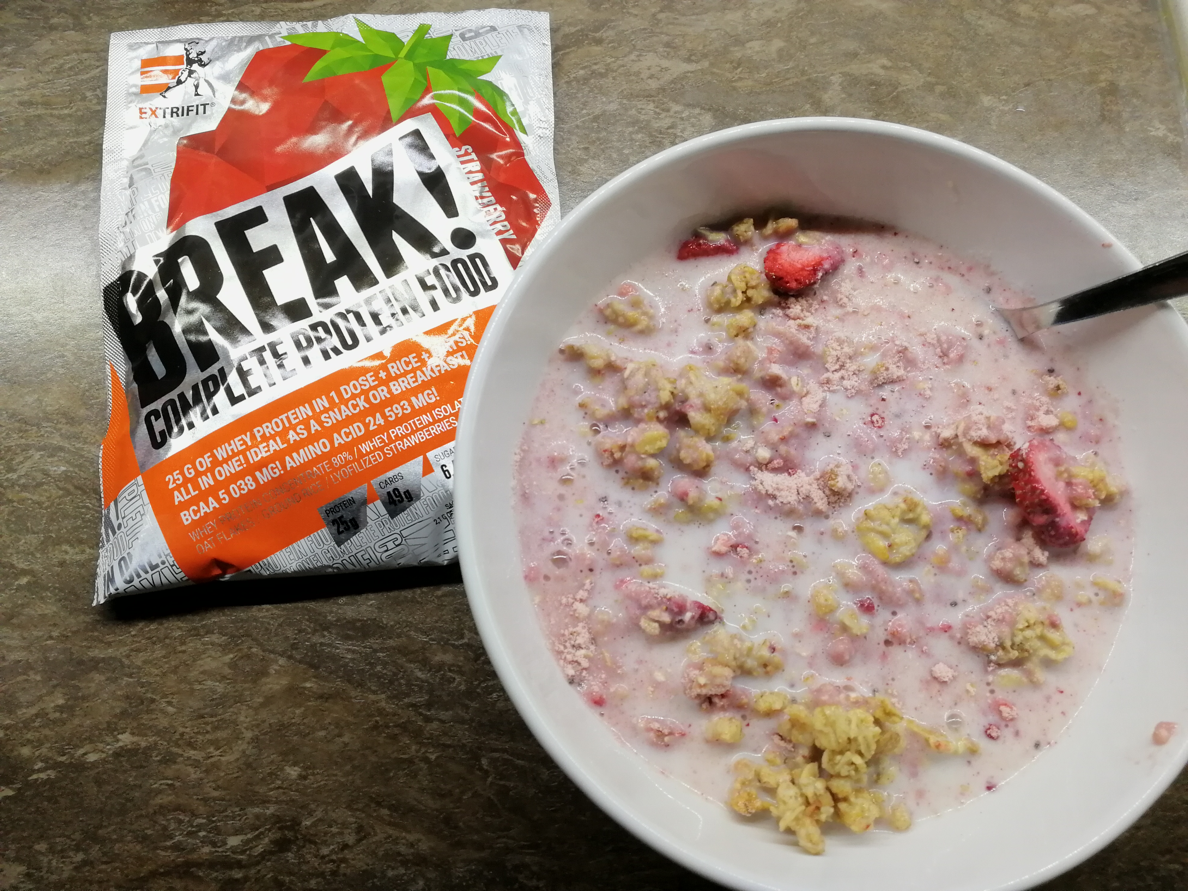 Ráno vstanu a po všech těch fyzických potřebách, kdy ze mě vycházejí tekutiny a jiný odpad, si odbudu hygienu a udělám si první jídlo dne. Ve všední den je to bez výjimky BREAK. O víkendu ne, to si schrupnu, nepospíchám, ale přes týden chci rychlé plnohodnotné jídlo mezi časem, kdy si dloubu ospalky z očí a neutralizuju smrad z huby a dobou, kdy taxikařím odvozem dcery do školy. A to je 30 minut. Ideální doba i s monumentální časovou rezervou na přípravu a snězení kaše s 30 g bílkovin a 60 g sacharidů. Je to potřeba? Ne, není. Můžu si kuchtit něco s podobnými čísly, ale musel bych vstávat minimálně o půl hoďky dřív. A na to se můžu vysrat.